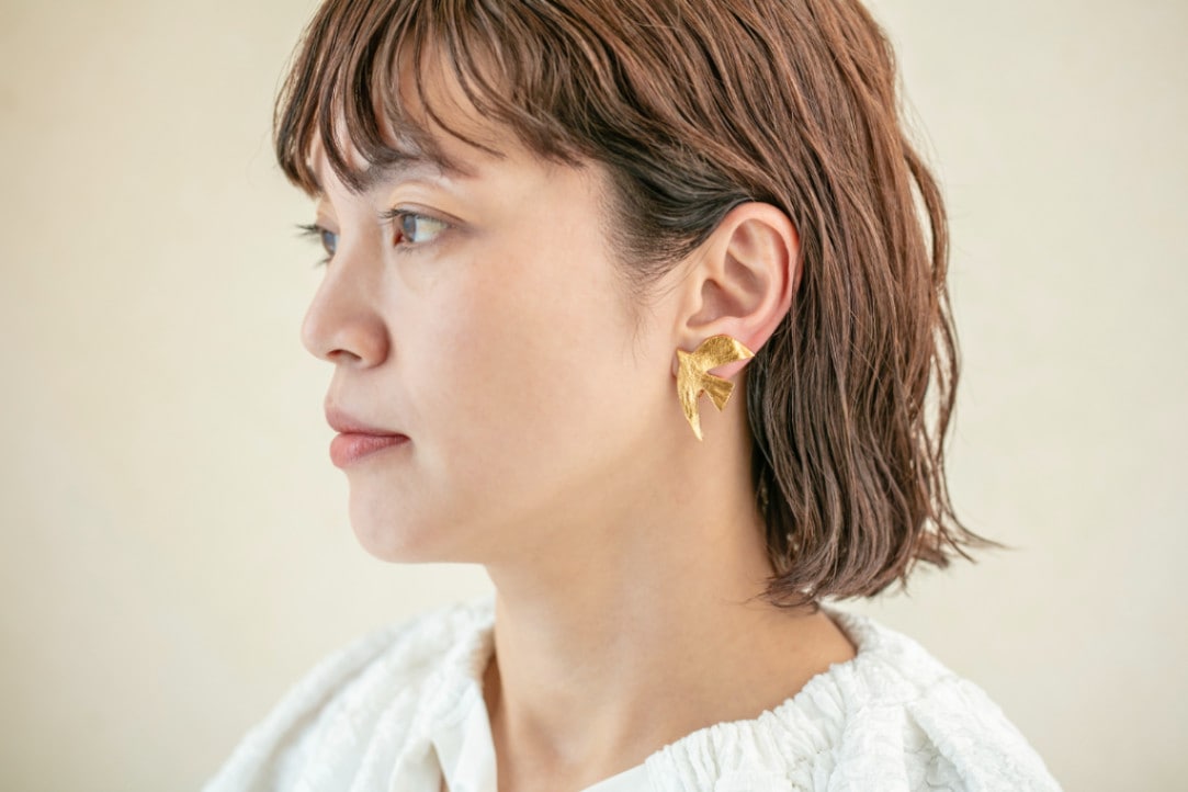 CECILE ET JEANNE(セシル・エ・ジャンヌ)のブランドシンボルでもあるラ・コロンブ(鳩)をモチーフとしたイヤリング。