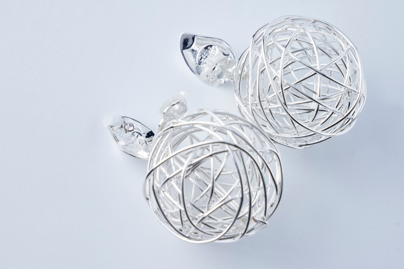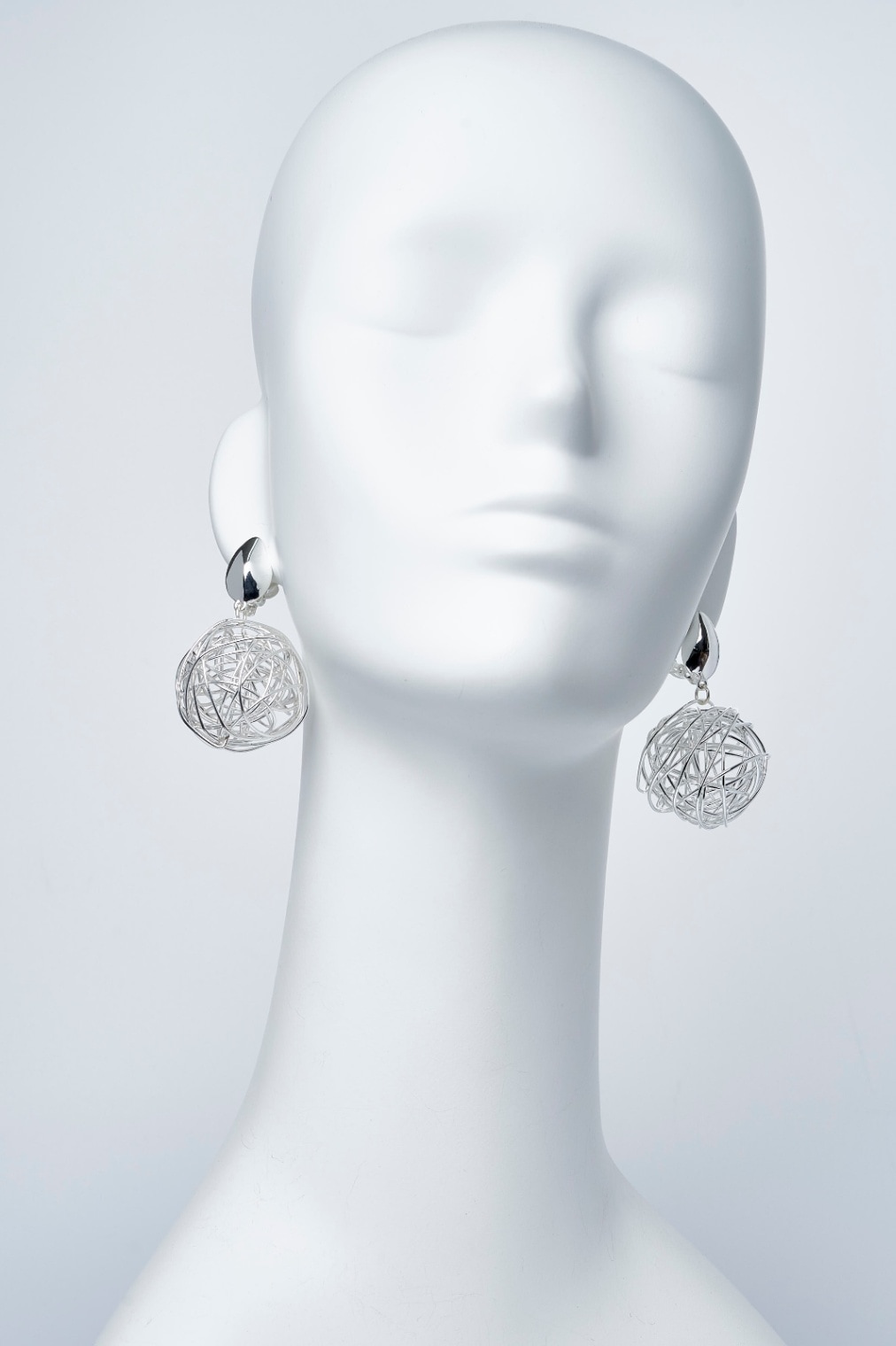 鳥かごをイメージした、ゆらゆら揺れる繭玉のような球状のモチーフが独創的なイヤリング。耳元で存在感を発揮し、お顔周りの印象をすっきり、クールに引き立てます。