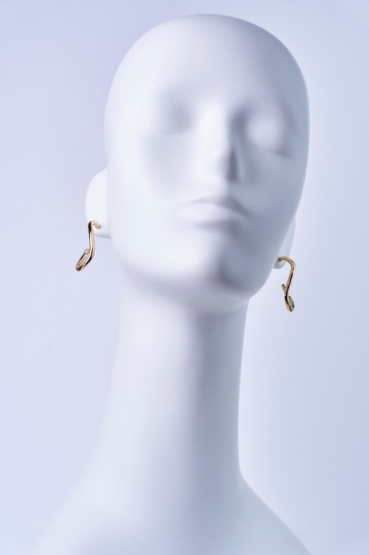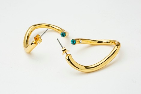 立体的にひねったカーブのフープが特徴的、ゴールドの艶めきで華やかな女性の表情へ。