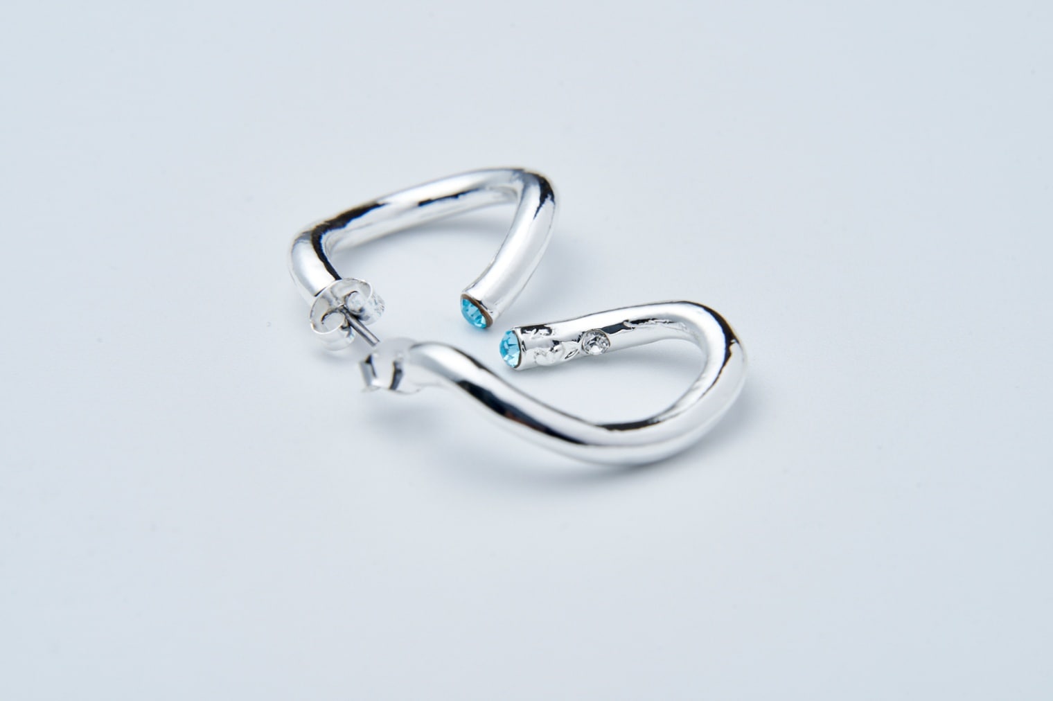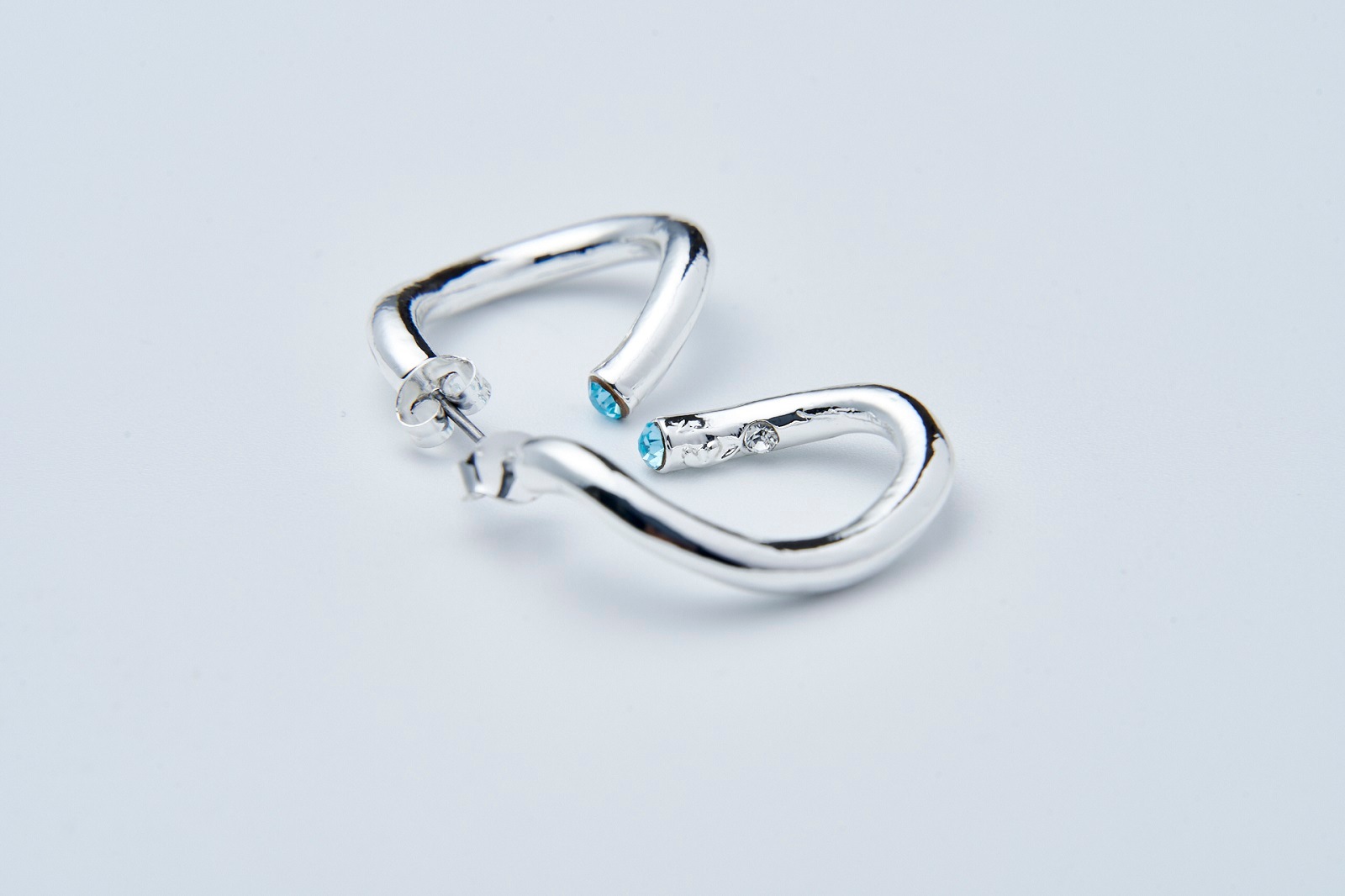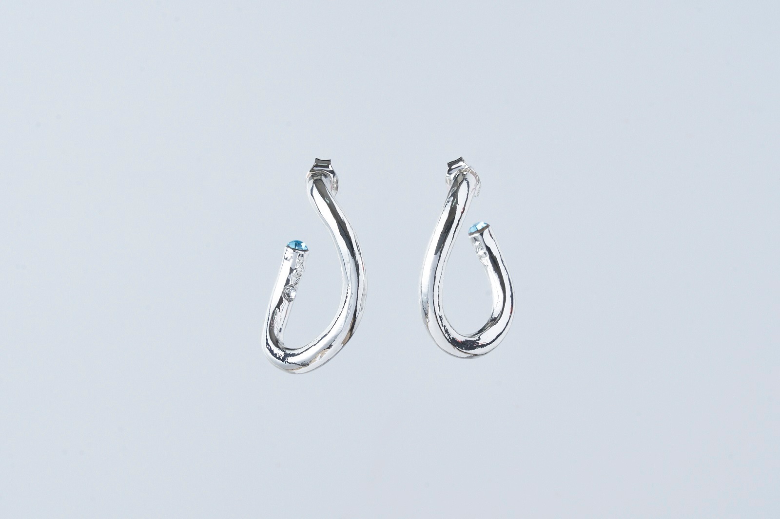 人気のツイストピアスに、小さいサイズが加わりました!揺れるたびにキラっと光るクリスタルと立体的にひねったカーブのフープが特徴的で、シルバーの艶めきでクールで知的な女性の表情へ。