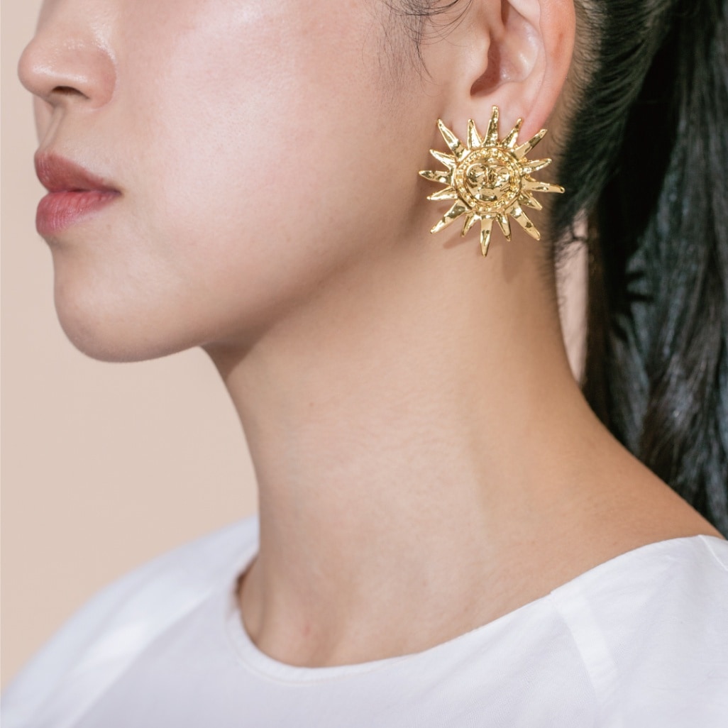 暖かさとエネルギーを感じさせる、「太陽」をデザインしたクリップ式のイヤリング。