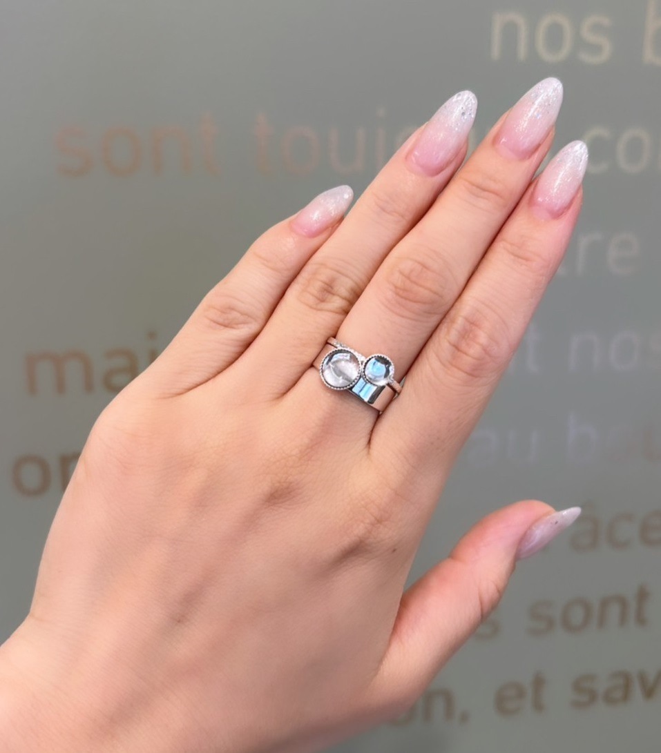 シルバー925コーティングの艶やかなシルバーに、美しいフランス伝統工芸のガラス(フランス語でヴェール)を組み合わせたセシル・エ・ジャンヌらしいリング。