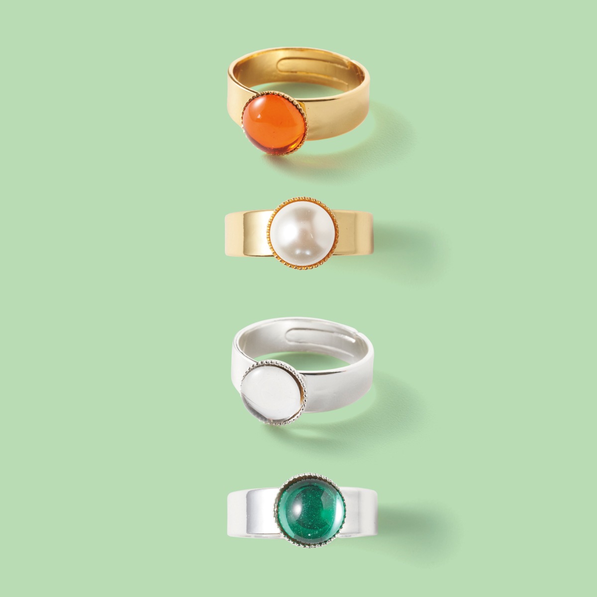 サイズの調節ができるので、どの指にでもつけやすく、中指や人差し指でボリューム感を楽しむのがおすすめ。
