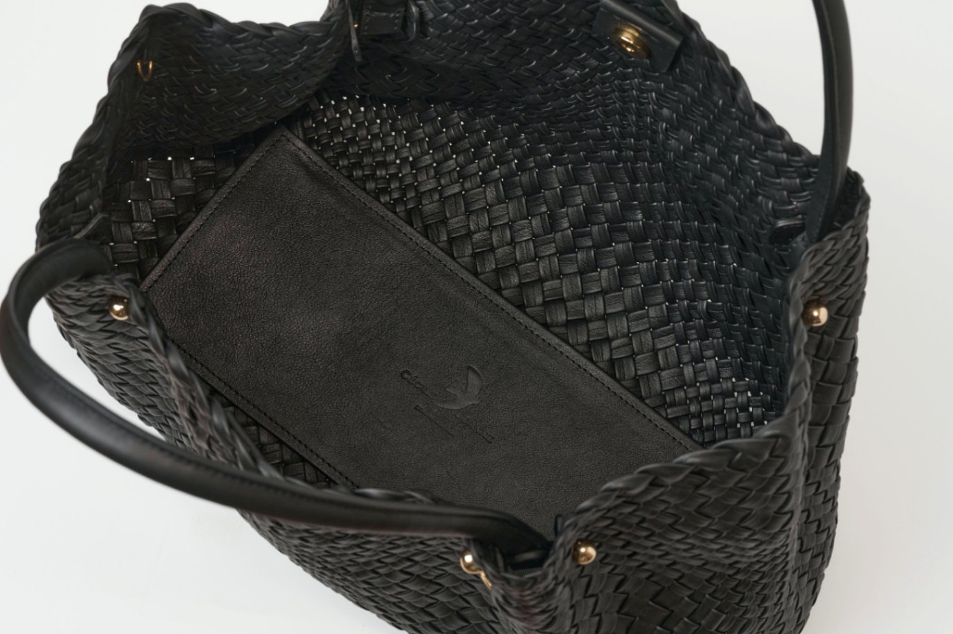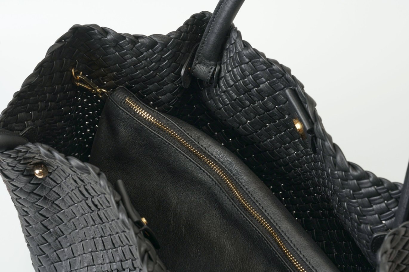編み籠と同じ手法で作られ、縫目も裏地もない美しいフォルムは機械では得られず、経験を積んだ職人の技術によるものです。