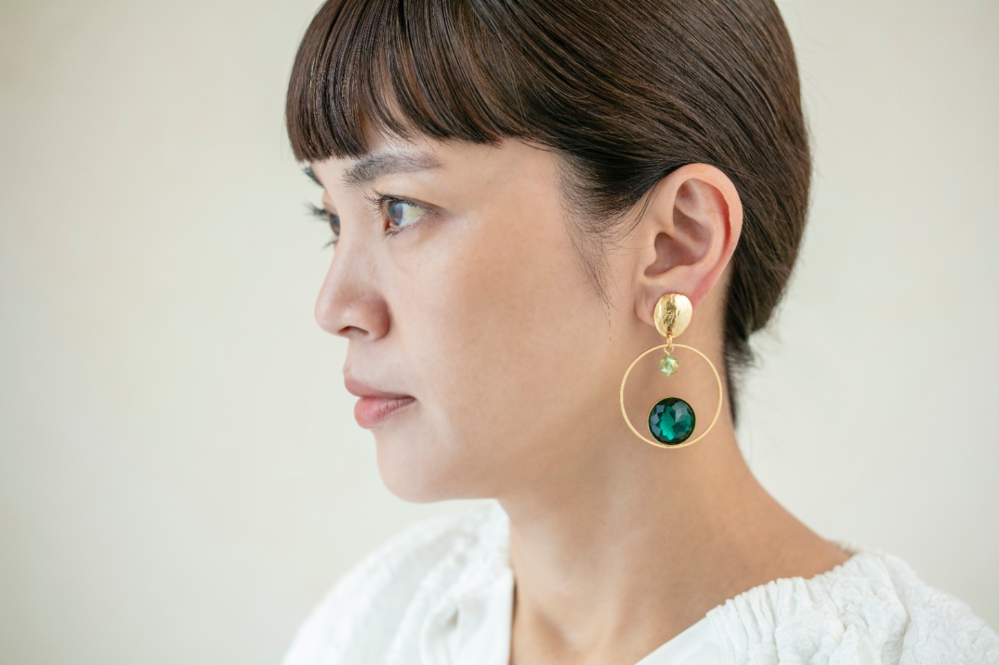 お顔まわりをぱっと華やかにし、お手持ちのネックレスやリングとも馴染みやすいので活躍の場が広がりそう。