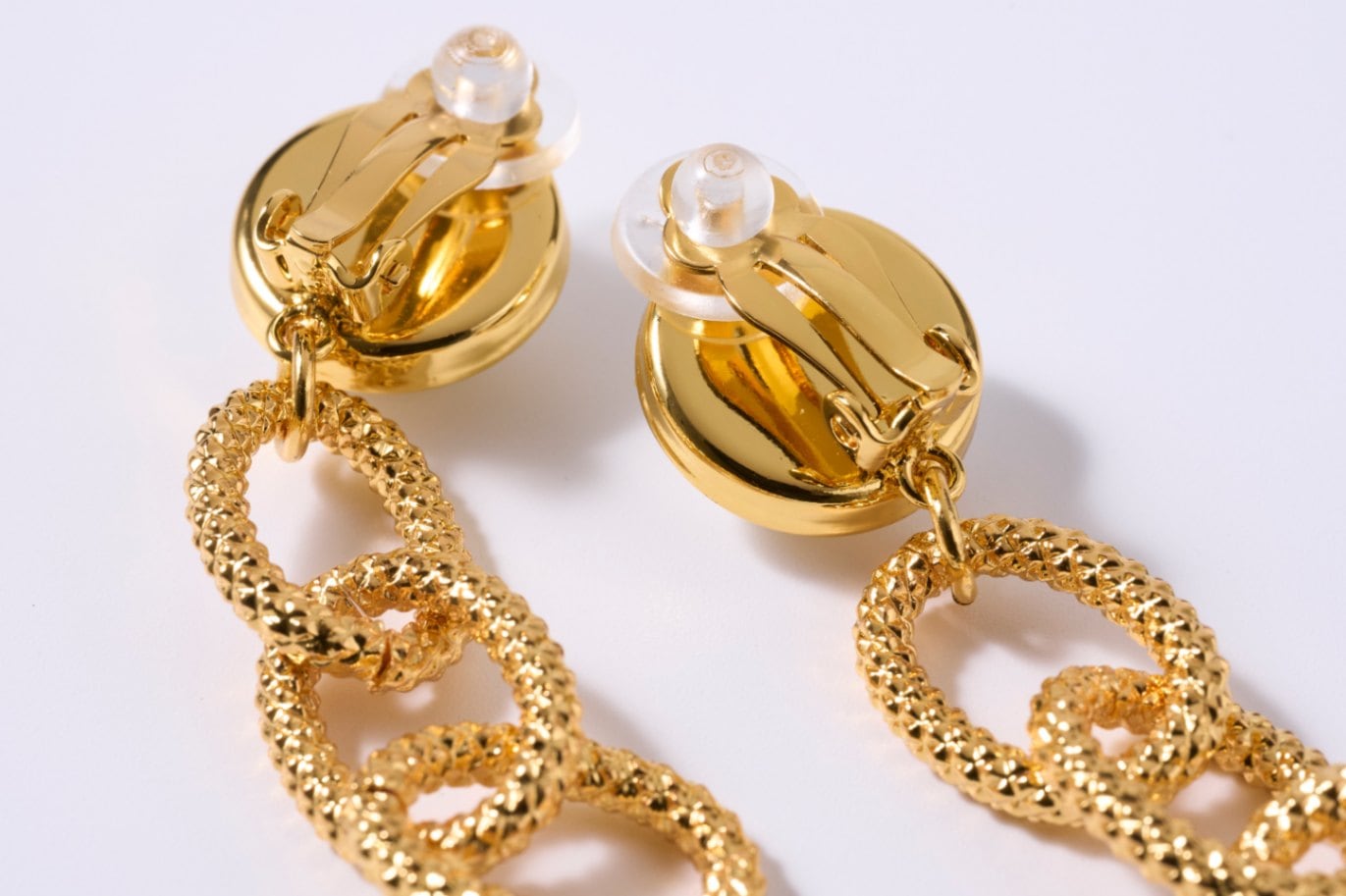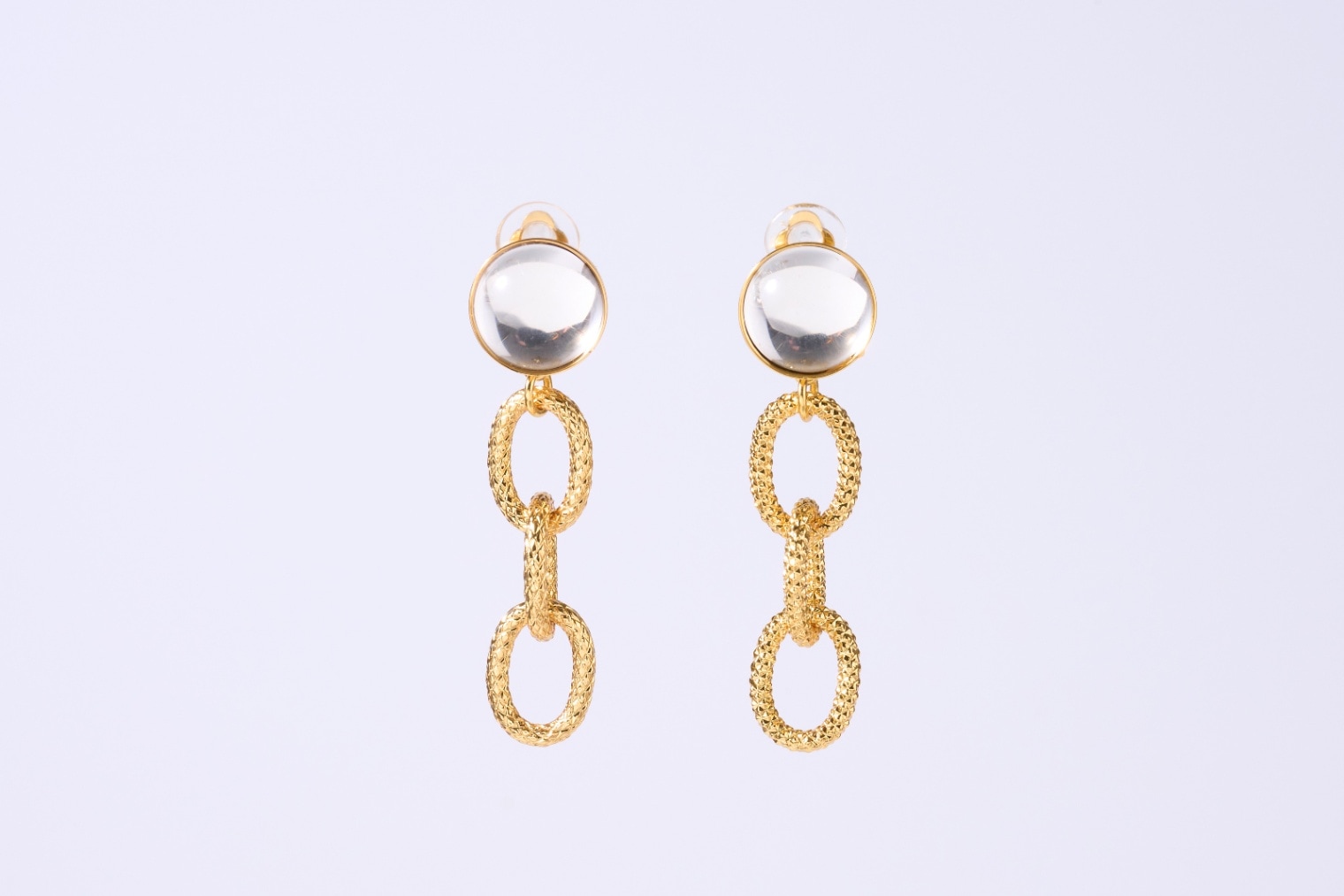 メッシュチェーン3連イヤリング ゴールドクリア