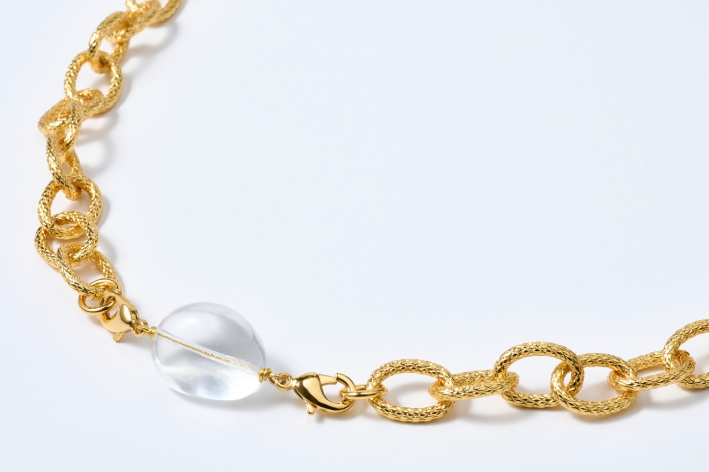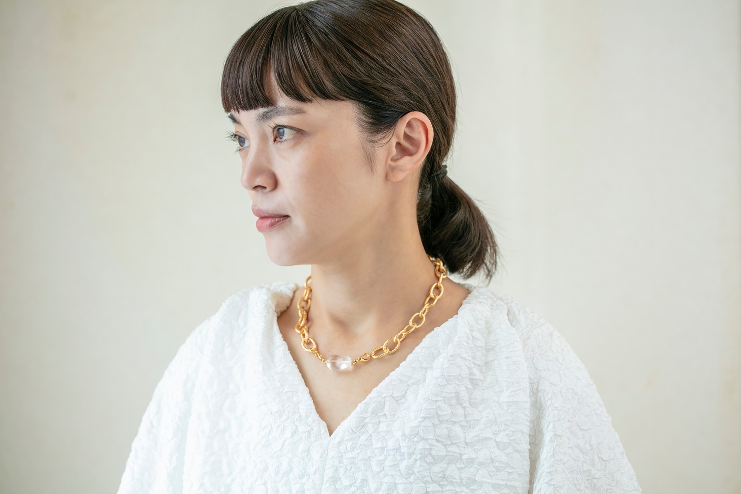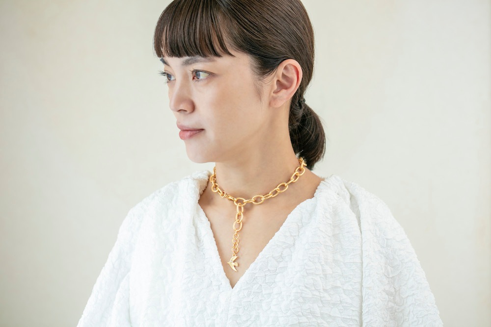 繊細に紡がれたゴールドのチェーンが柔らかに光をまとい、高級感に温かみをもたらすネックレス。