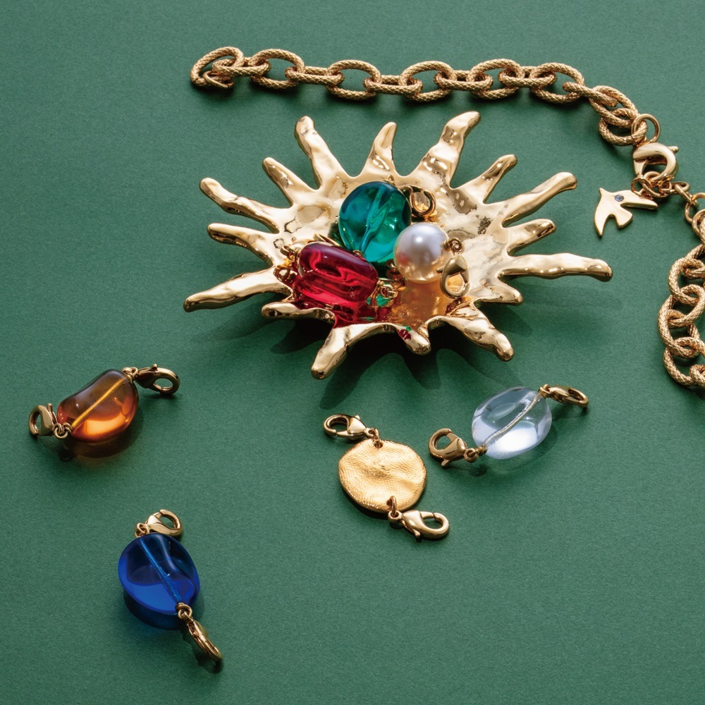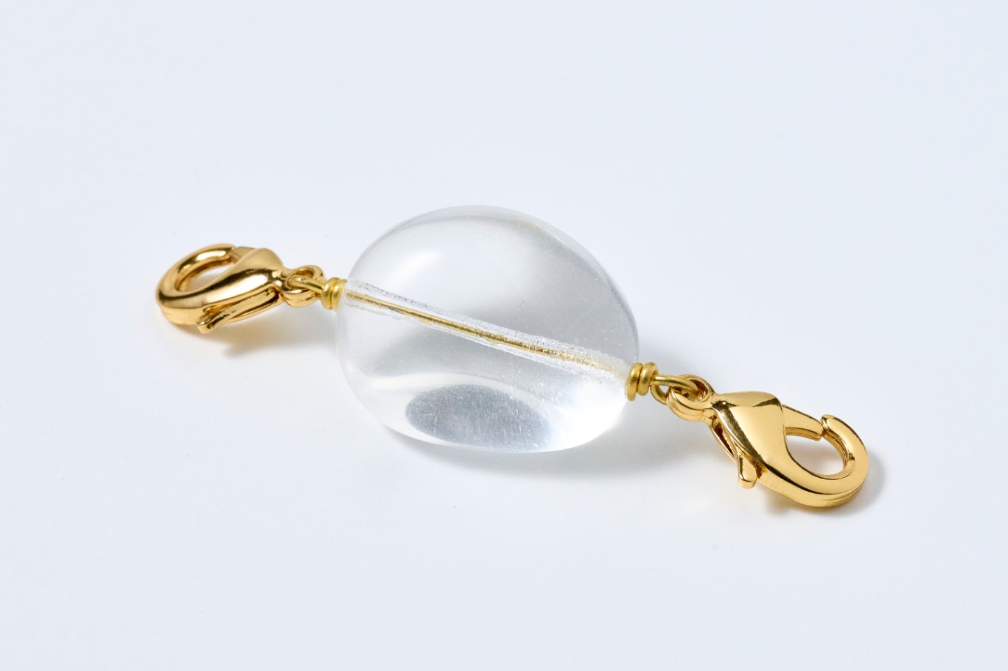 パリの伝統的な技法で作られたガラスパーツがトップにあしらわれ、一年中顔まわりに光をもたらし、明るく照らしてくれるような華やかなデザインです。