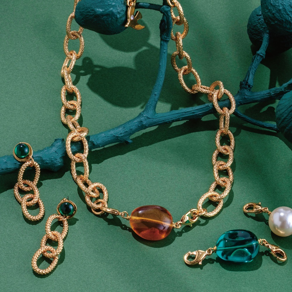 - サイズ=長さ 42cm ガラスパーツ:縦1.7㎝ 横2.2㎝ 素材=真鍮/24金コーティング/ガラス