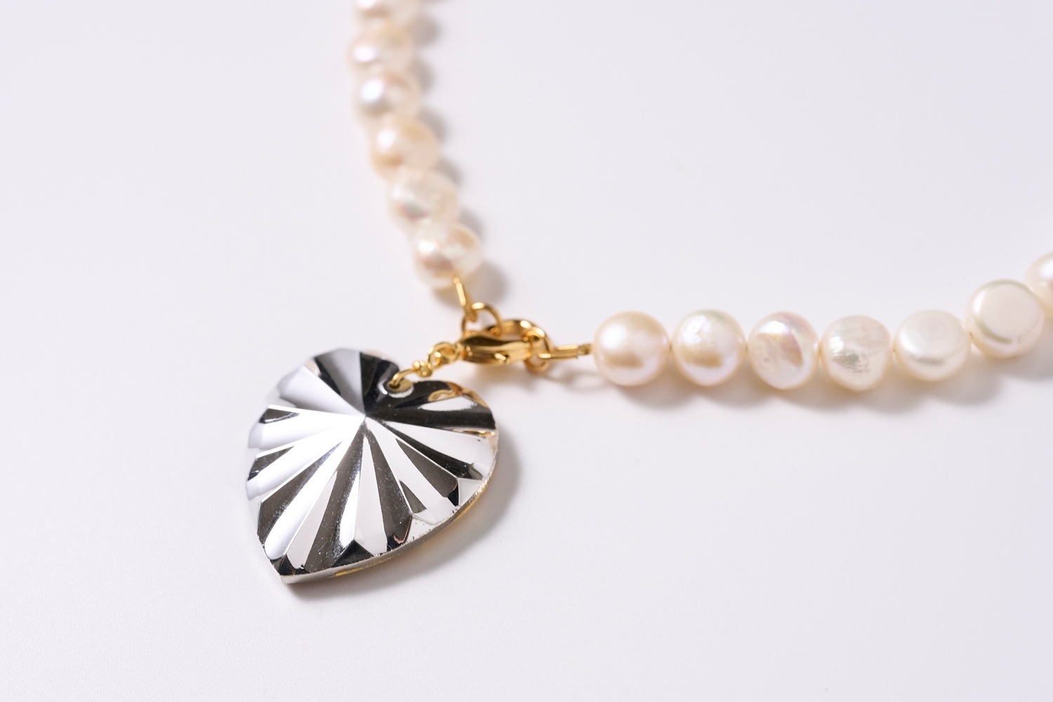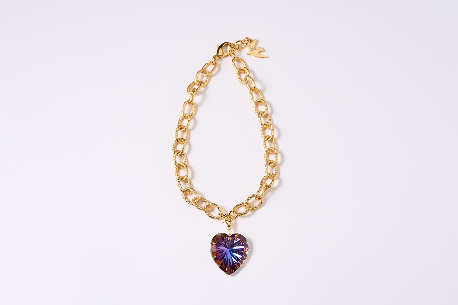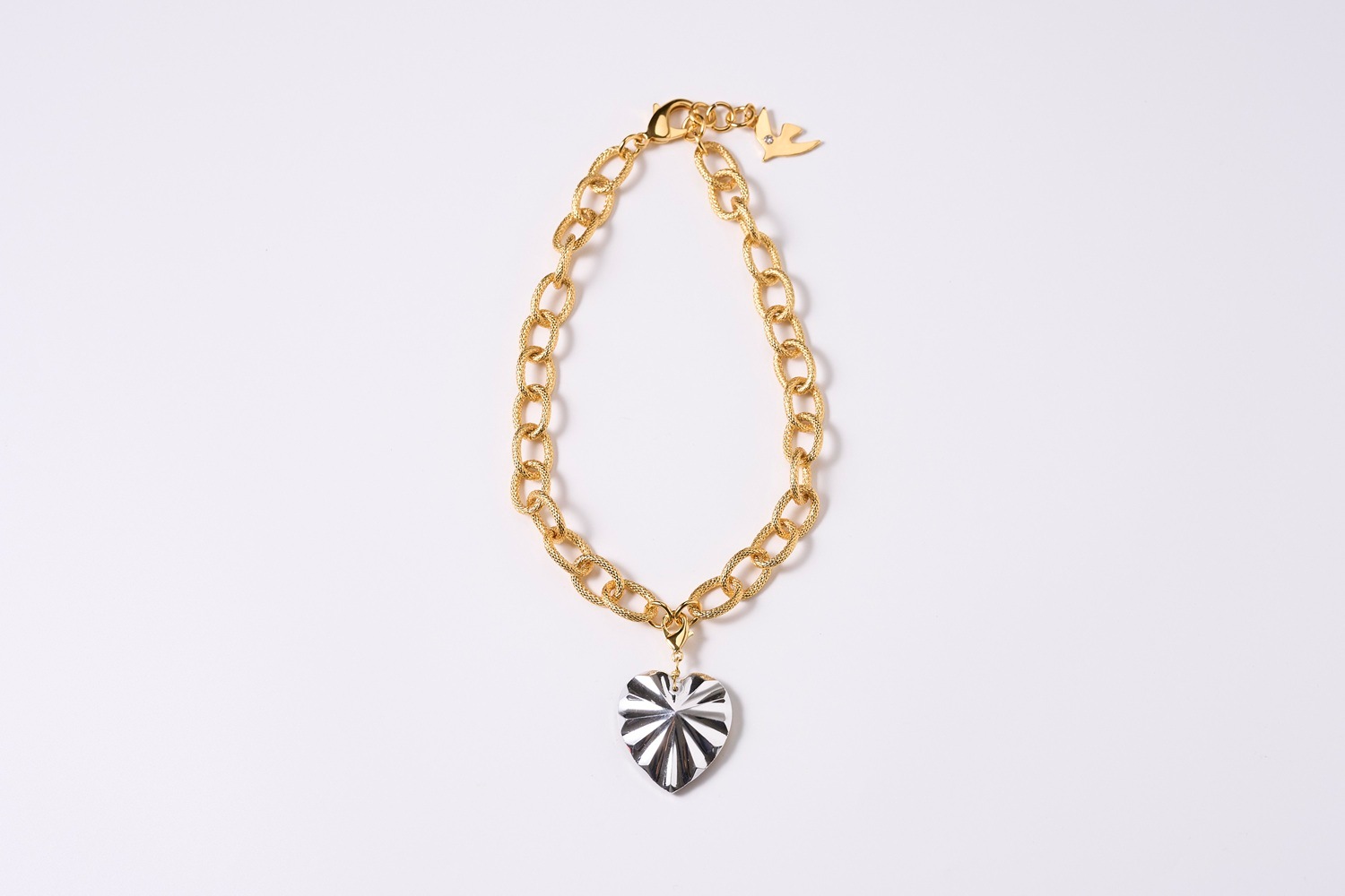 アイコニックなクリスタルハートのチャームが、ひときわ目を惹く華やかなネックレス。
