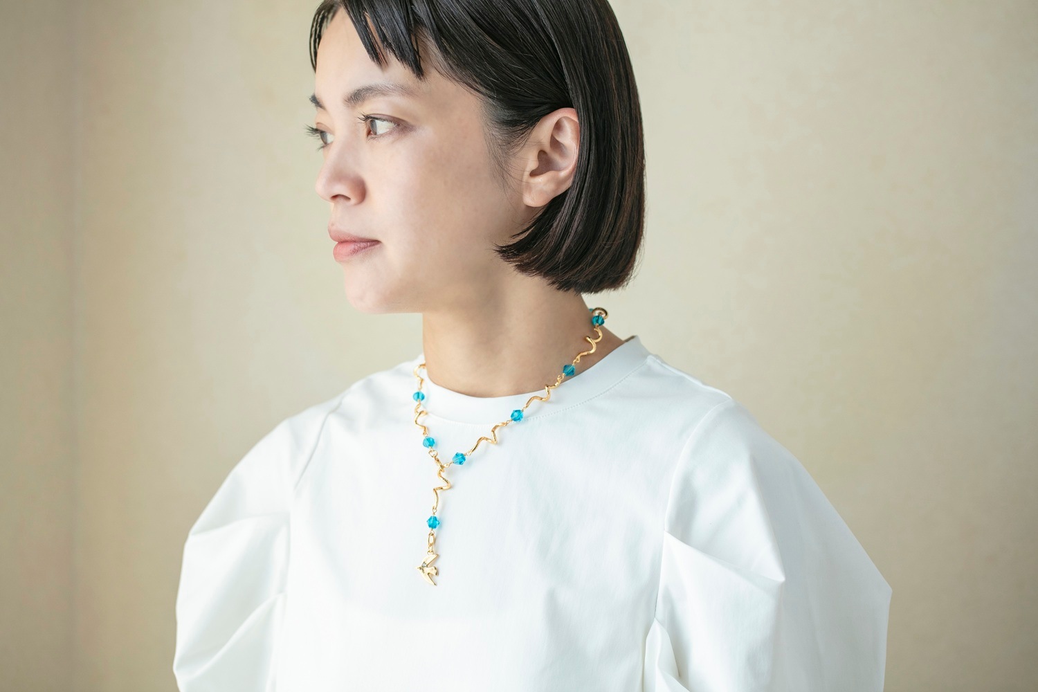 地中海をイメージした鮮やかなブルーは、身につける人に自然のエネルギーをもたらす今季のキーカラーのひとつ。白や黒の洋服に合わせて、爽やかな夏のスタイリングをお楽しみください。