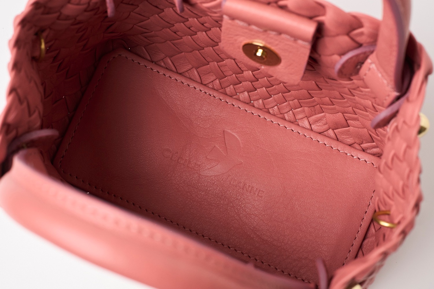 編み籠と同じ手法で作られ、縫目も裏地もない美しいフォルムは機械では得られず、経験を積んだ職人の技術によるものです。