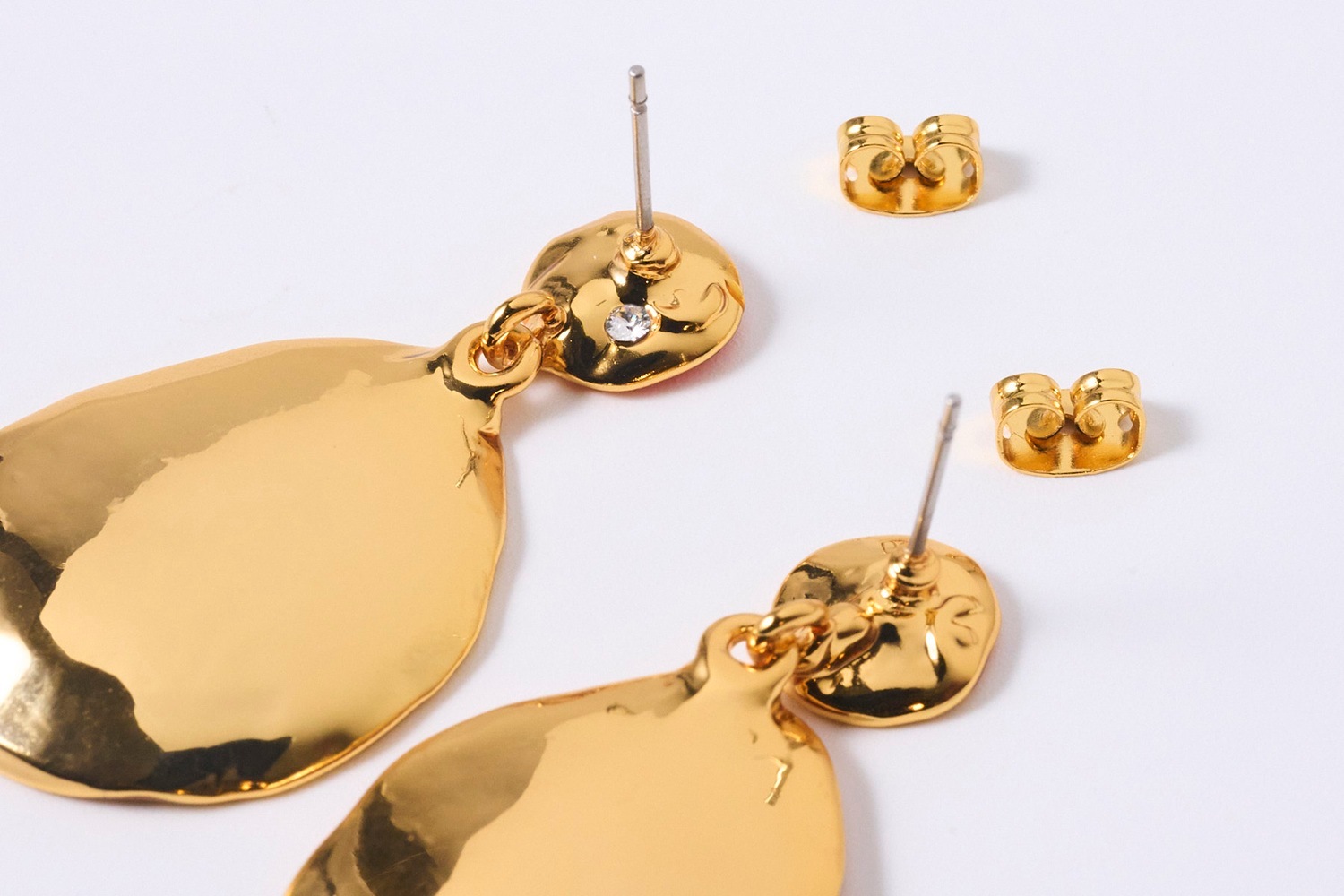 - サイズ=縦3.5cm x 横2.5cm 素材/カラー=真鍮/24金コーティング/エナメル樹脂/ポスト部分:チタン