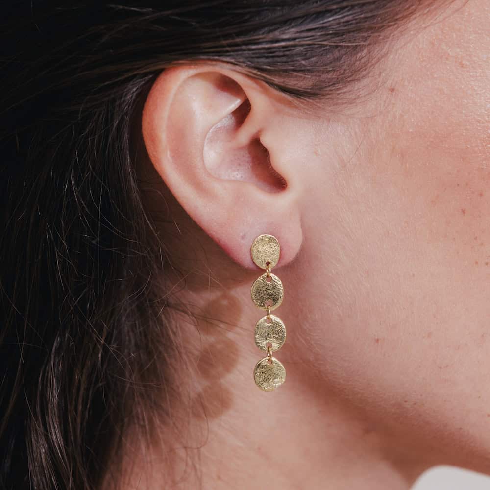 「Lumiere」ピアスは、耳元で光を受けて繊細に輝き、肌のトーンや横顔を美しく引き立てます。