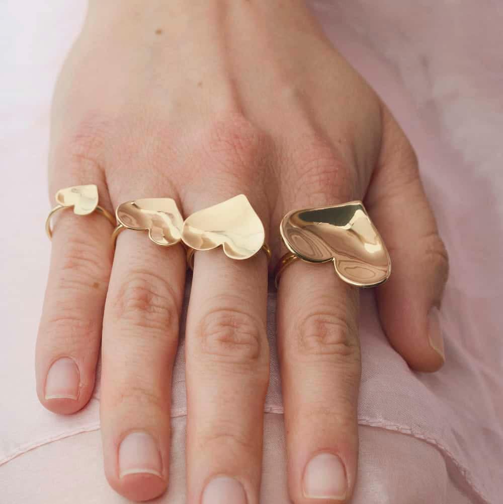 カーブを描くハートは「愛がこぼれ落ちないように」という想いを込めてデザインされ、手作業で丁寧に仕上げられた繊細なフォルムが光を優しく集め、角度によって表情を変える印象的な輝きを放ちます。