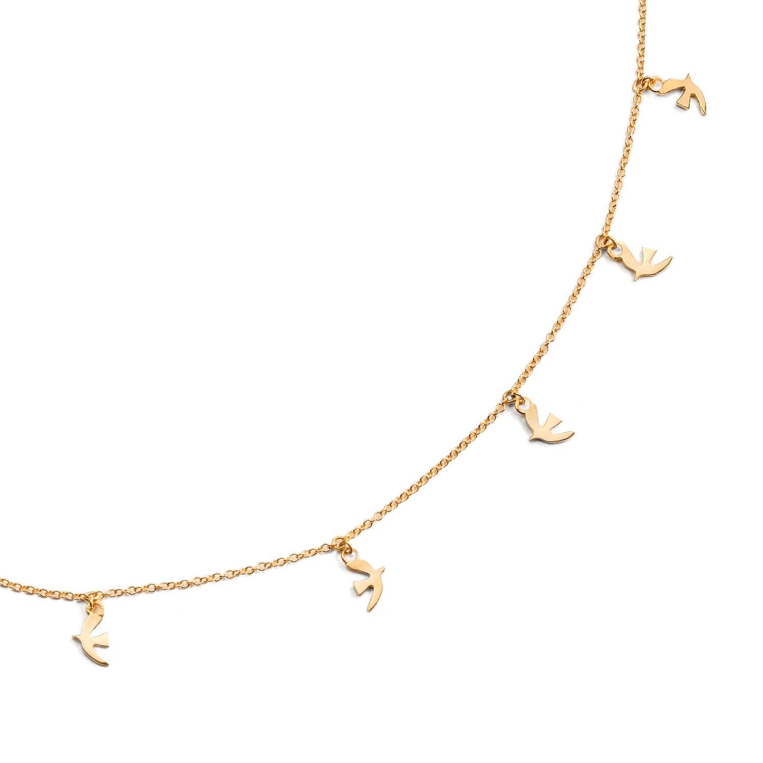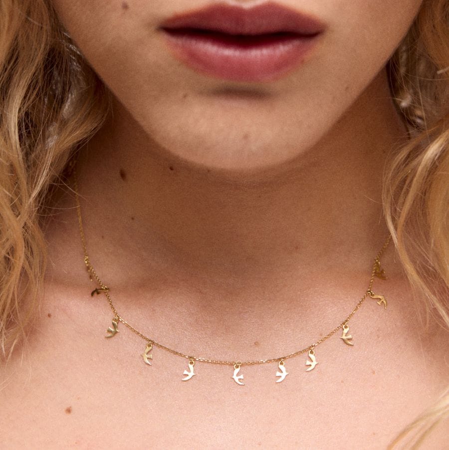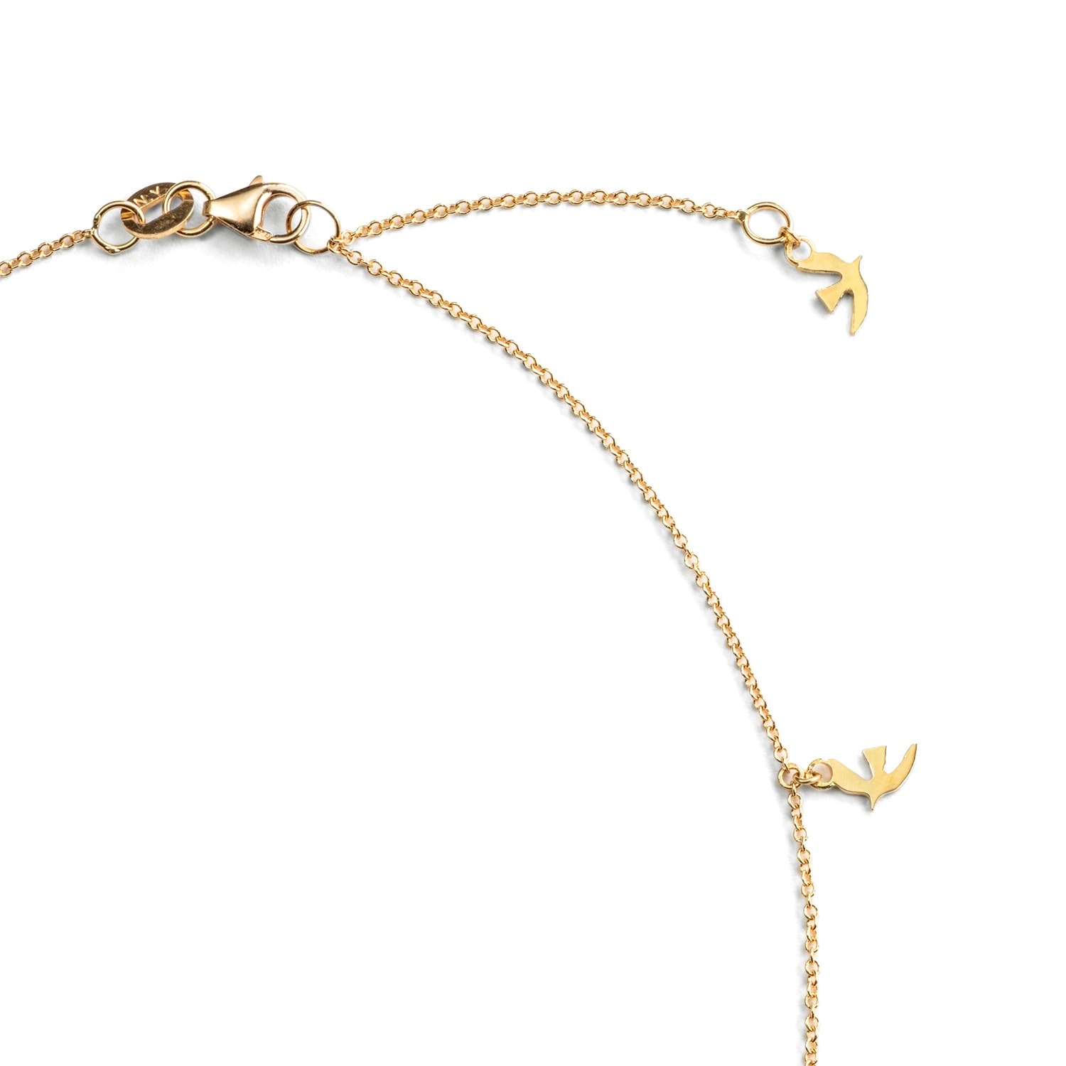 12羽のミニコロンブ(鳩)が連なる、18Kゴールドのネックレス。詩のように美しく繊細なデザインが、身につける人の仕草や光の角度でそっと輝き、見る人の心をふっと揺らします。 小さな鳩は、愛・平和・自由・女性らしさの象徴。日常の装いにはもちろん、特別な日のコーディネートにも寄り添う、まるでお守りのような存在です。 華奢ながら品のある輝きで、単品でも重ね付けでも美しいバランスを演出します。