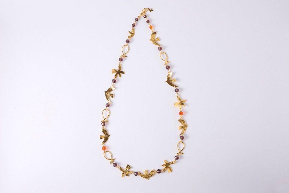セシル・エ・ジャンヌで人気のモチーフ(ラ・コロンブ(鳩)・魚・星)が連なったロングネックレス。