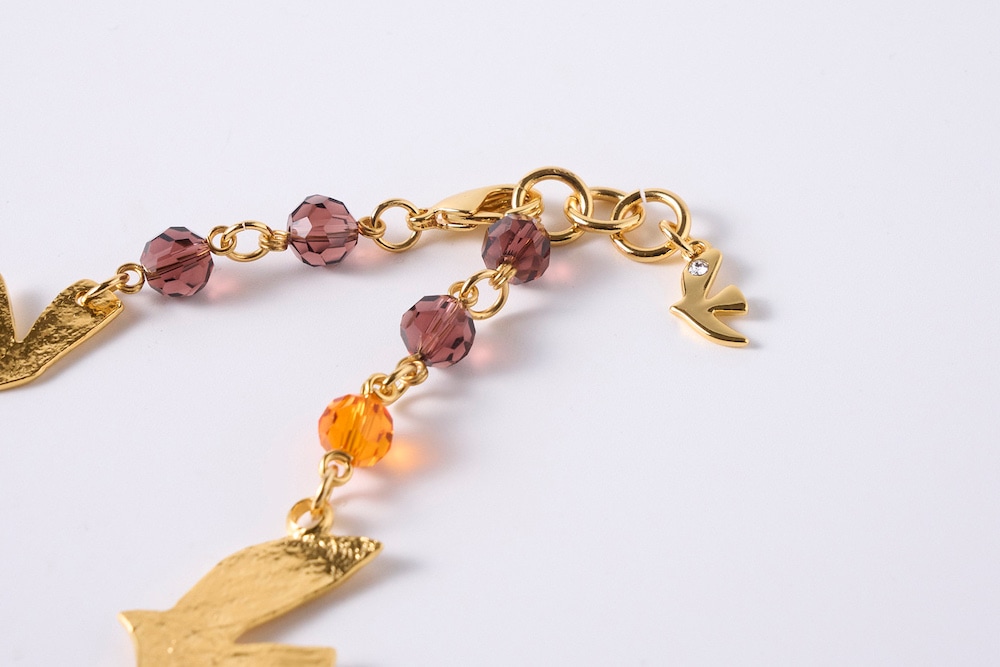 フランスの伝統工芸であるガラスパーツは、シックなバイオレットにオレンジをプラス。パリのエスプリを効かせたようなデザインです。