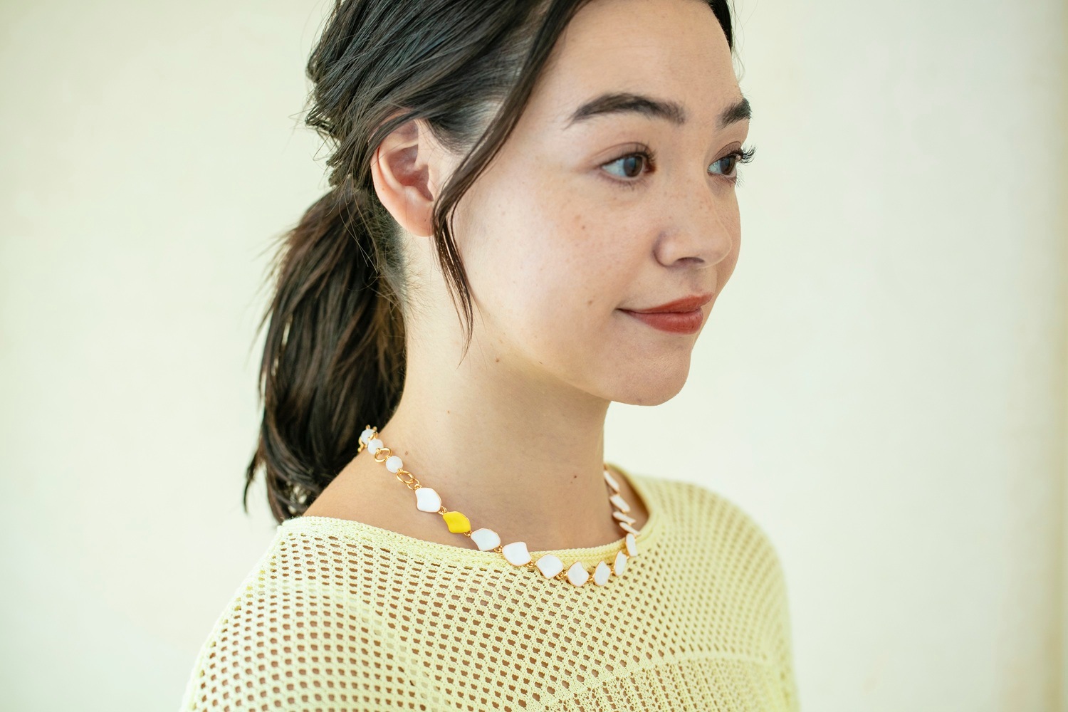 【予約注文 4月20日 お届け】エマイユ ホワイト×イエロー フルールネックレス