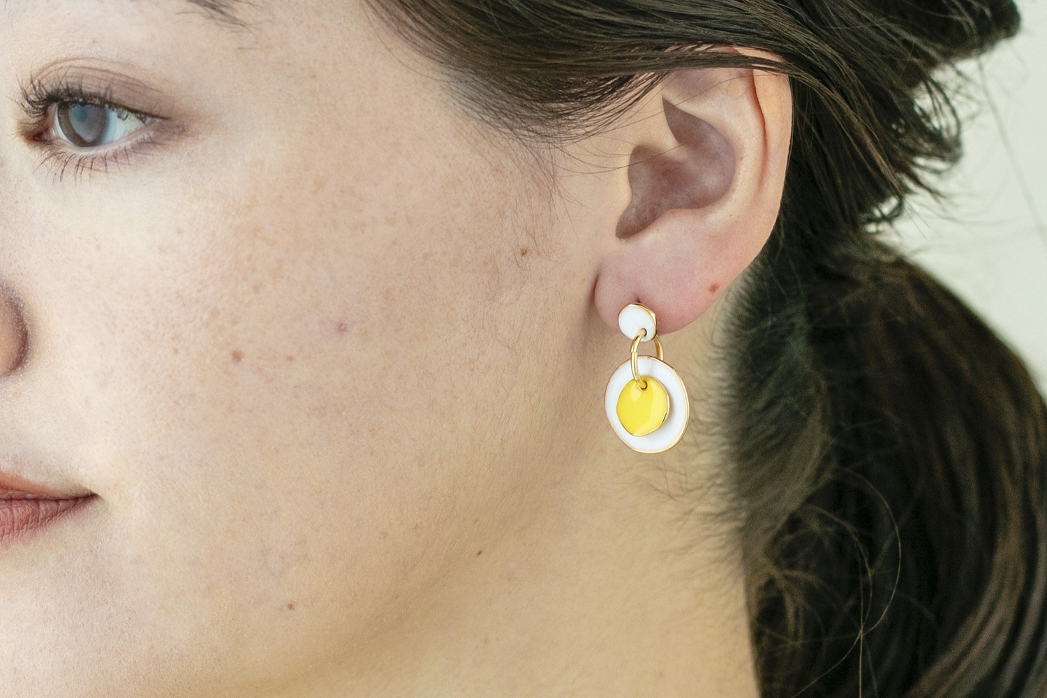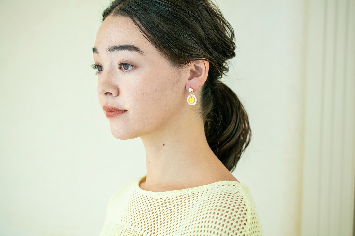【予約注文 3月20日 お届け】エマイユ ホワイト×イエロー サークルピアス
